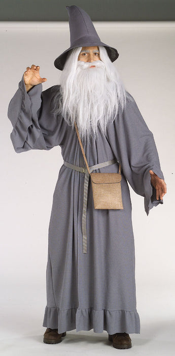 Straight out of the middle Earth! Robe, belt, hat and satchel. Polyester. Standard fits up to size 44. Wig & Beard not included. Sold separately.