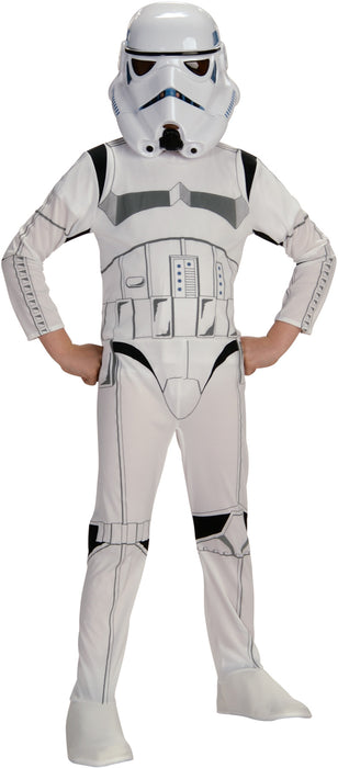 Right out of the Star Wars movies comes this great looking Stormtrooper costume! Printed jumpsuit with attached boot covers, and half mask. Jumpsuit has back velcro closure, and plastic half mask has elastic strap for secure fit. 100% polyester. Care instructions - hand wash cold water, do not bleach, dry flat, do not iron.