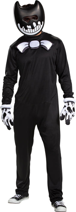 This soulless demon character is sure to scare! From the popular horror video game, Bendy and the Ink Machine, bring the ink-demon to life! Includes black jumpsuit, character half mask and pair of gloves. Shoes not included.