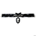 A great accessory for your ghost or spirit costume! Satin choker with velvet strip and bow tie, metal ends and skeleton hands with skeletal cameo attached. Adjustable chain and clip closure. 4" tall X 12" wide. Actual choker height 1-1/8th" tall. Available Sizes: One size fits most adults.