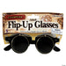 Great accessory to your Steampunk costume! Include: Round black-framed glasses have dark lenses that will flip up for clear vision. Available size: One size fits most.
