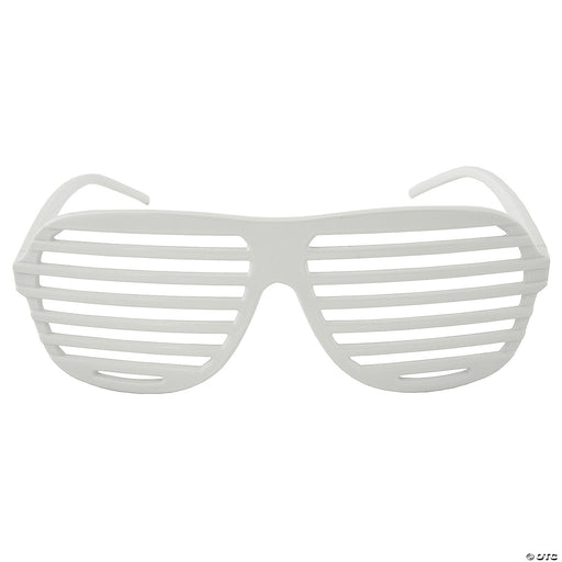 Take a trip back to the 80s and get your groove on with the Louvre White Glasses from Costume-Shop.com! Inspired by the classic louvered-frame styl...