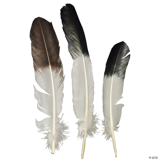 Great Accessory For Any Native American Indian. Costume! Includes: White feather with dark tip. Assorted dark colors. Size ranges from 10" to 14".