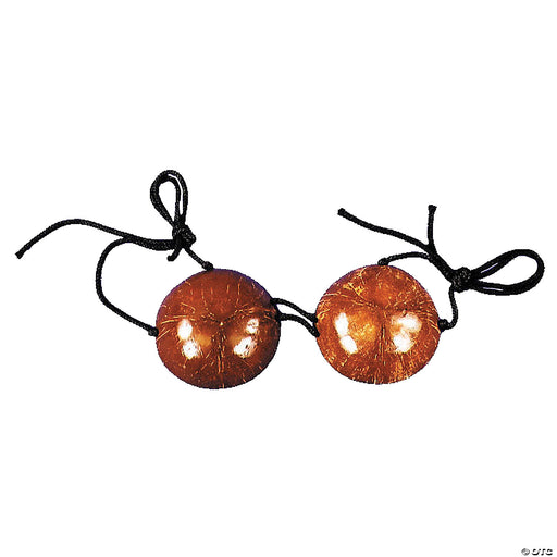 Genuine polished coconut shell bra cups with adjustable cord fasteners. One size fits most.