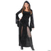- Enchanting Design: Features a black velvet gown with front slits, bell sleeves, a low-cut square neckline, and an attached hood for a captivating sorceress look.