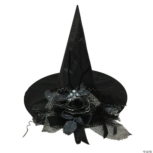 Complete your witch costume with our elegant Witch Hat with Black Flowers. This black, satin-look hat features a beautiful rose resting on ribbons ...