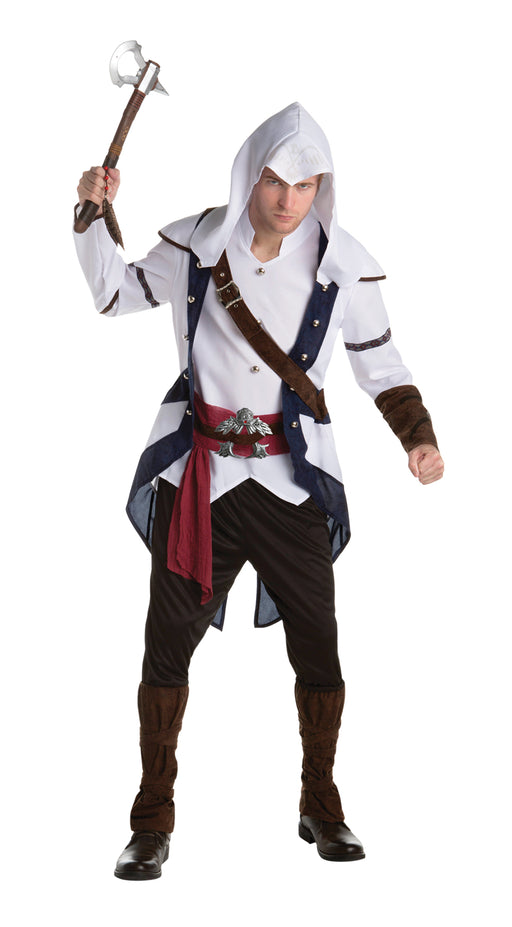 Your teen can now dress like his favorite character Connor from the award-winning video game Assassins Creed! Hooded tunic, sash belt with printed ...