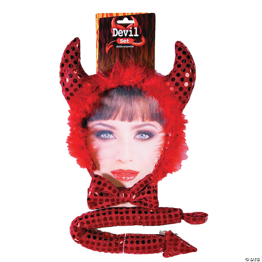 Adult Devil Costume Kit. An easy way to show off your devilish side! Includes: Red sequin headband with devil ears, bowtie collar, and devil tail. ...