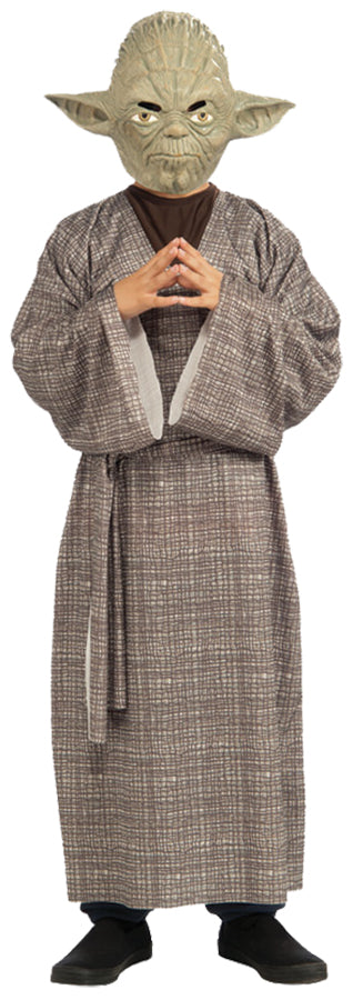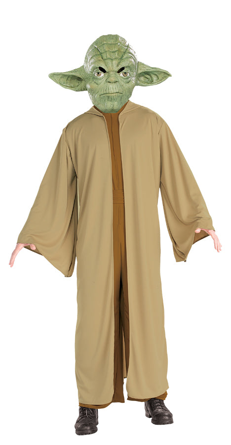 Become the wise Jedi master Yoda with this deluxe costume! Hooded tan robe, shirt, pants, waist sash and latex mask.