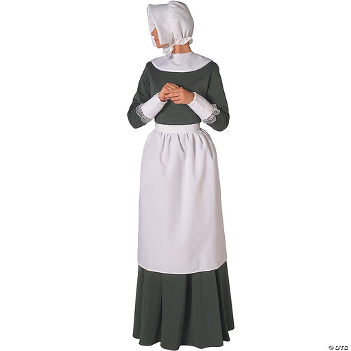 Gives any long dress a pilgrim look. Includes bonnet, apron, cuffs, and collar made of heavy weight cotton.