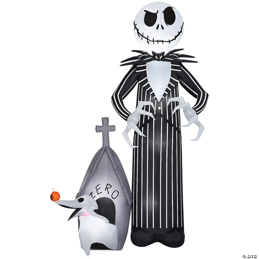 Fun inflatable Jack Skellington from The Nightmare Before Christmas movie with his ghost dog Zero will be perfect for your Christmas yard decor! S...