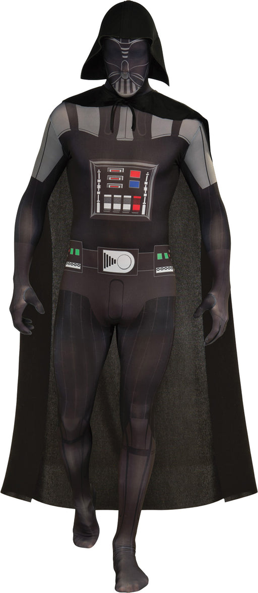 An interesting new skinsuit version of the villain from the Star Wars series of movies. Bodysuit, cape, and removable helmet.