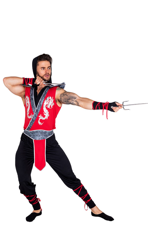6pc Deadly Combat Ninja Includes Hooded Shirt with Dragon Print, Waist Panel, Lace-Up Cuffs, Pants, and Lace-Up Leg Warmer
