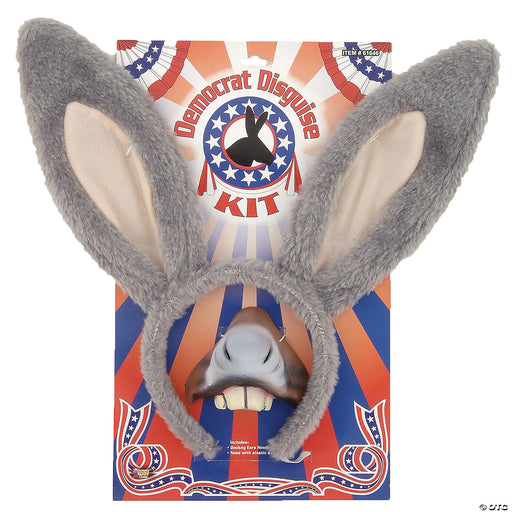 Show your stripes on election day in this Democrat Donkey kit! Includes: Headband with gray donkey ears and donkey nose with teeth held on an elast...