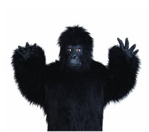 Plush Gorilla-Monkey mascot includes soft plush head with see-through mesh over eyes, jumpsuit with attached mittens with hidden openings for hands...