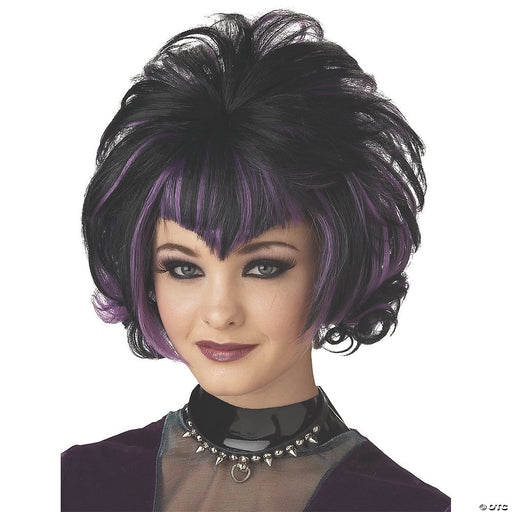 This black, purple wig is the perfect complement to a gothic Halloween costume. Widows peak wig in a traditional flip style. Great for vampire cost...