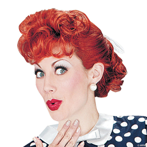Look just like your favorite redhead comedienne! Sassy blue dress with white polka-dots and white collar and cuffs includes a white apron with a s...