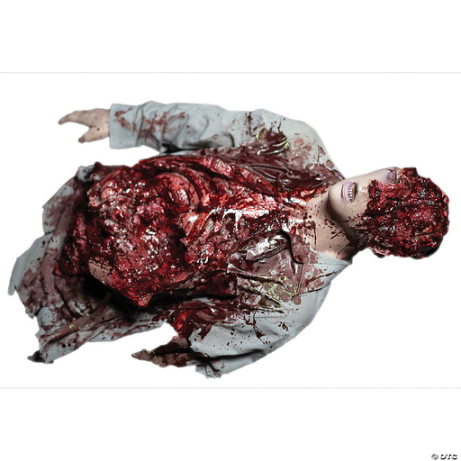 This is what is left after a zombie attack! Leftovers is a bloody, gory half body prop made of latex and foam. Flat backed. 36 inches long. Clothin...