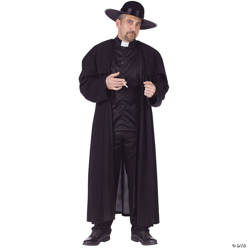 Priest Deluxe Adult Costume. Holy Smoke! Costume includes: shirt, coat with capelet, and hat. Available Size: Standard - fits up to 6 ft. and 200lb...