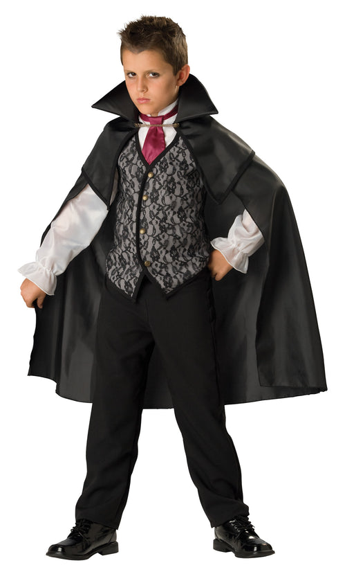 Cape, pants, vest with attached sleeves, collar and tie.Features: Cape, Vest with Shirt, Pants