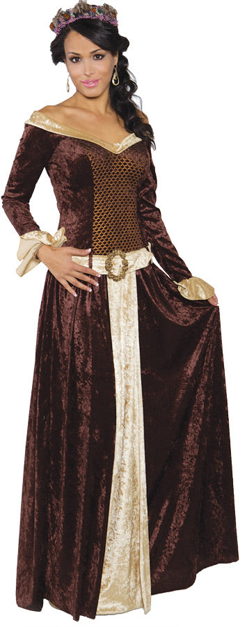 A great costume to wear to the Renaissance faire or for any Medievil-themed event! Full-length off-the-shoulder multi-colored dark-colored dress wi...
