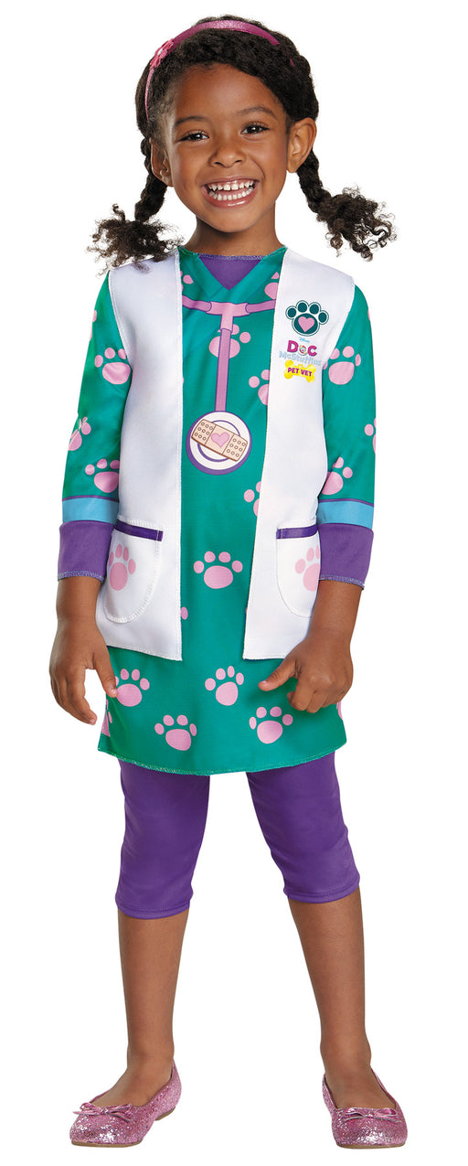 From the fun children's animated series Doc McStuffins! Dress with attached vest, leggings and headband. Toddlers size fits sizes 3T-4T.Material of...