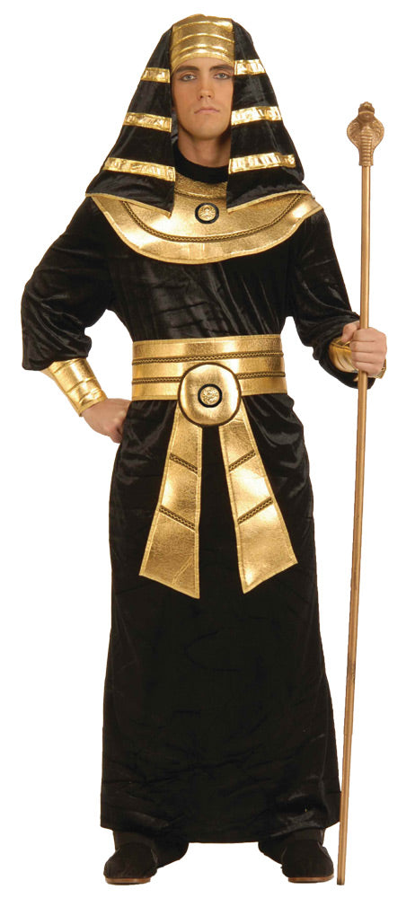 A great egyptian costume perfect for a pharaoh! Black andgold drape headpiece with black robe with gold accents andbelt. Fits adult large sizes 42-...