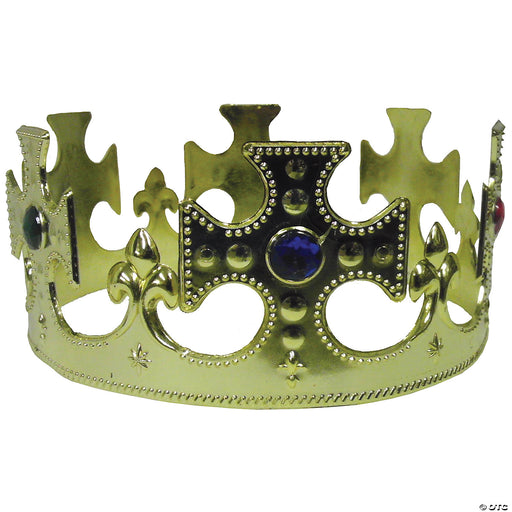 Plastic Gold Jeweled Crown. Feel like Royalty! Plastic crown with assorted plastic stones embossed in crosses. Adjustable headband. Available Sizes...
