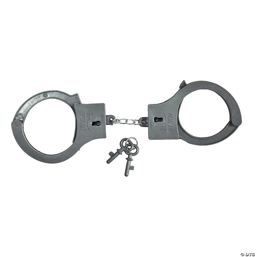 Plastic toy handcuffs with real metal chain and key. Great for police costumes.