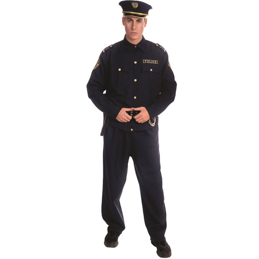 Adult police costume complete with shirt, pants, hat, belt, hand cuffs, and gun holster. Even has real buttons, pleated button shirt pockets and em...