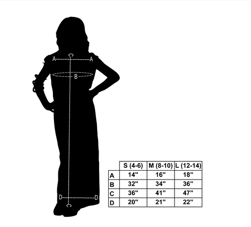 Split-front satin gown, sequin belt with attached puff-print apron, puff-print collar plus sequin and jeweled headpiece. X-large fits bust 40-43, w...