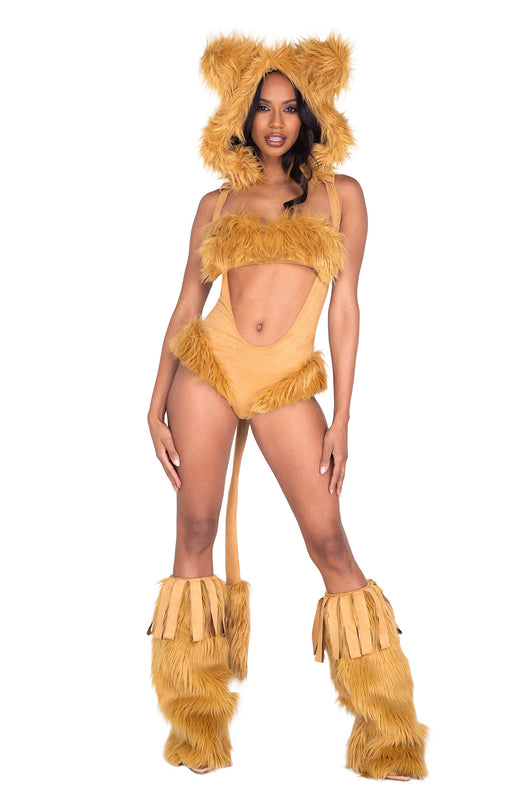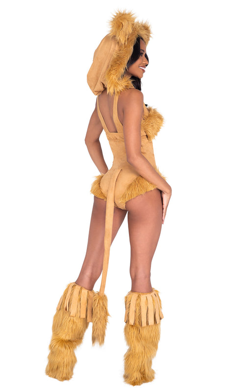 2pc Queen of the Jungle Lion Includes Hooded Romper with Faux Fur Trim and Attached Tail, and Tube Top