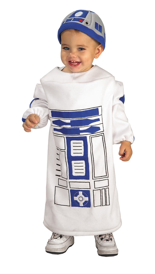 Your little one can be the cutest R2D2 ever! Soft tunic with printed character markings includes a printed soft cap. Toddler size 1-2T.