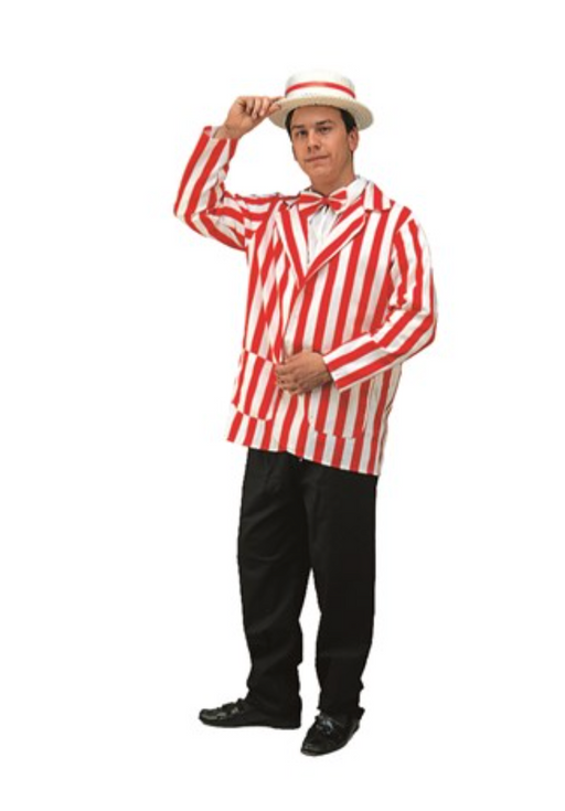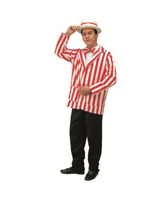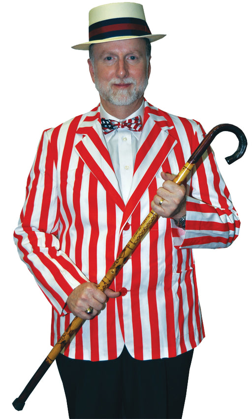 Red and white unlined striped blazer with front pockets andwide lapel. Hat and cane not included. Polycotton. Stripe width may vary.Features: Ligh...