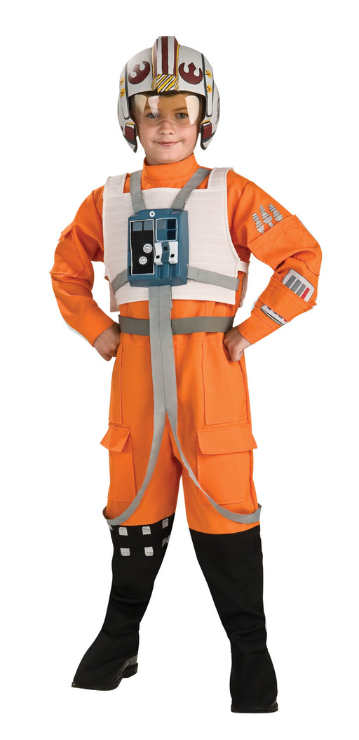 Become the brave pilot who was Last of the Jedi! Orange jumpsuit, a vest with straps, character chest box and matching character helmet.
