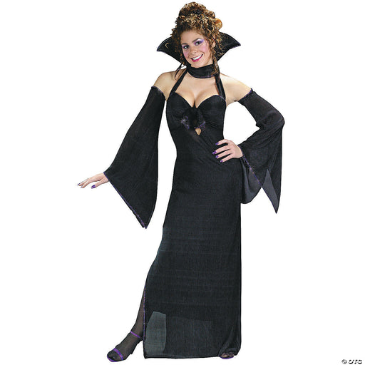Be a slinky vampire this Halloween as you dress up in the Dark Venus costume for women. This demonic seductress wears a long, black gown in pleated...