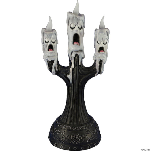 15" Ghost Candle With Faces Animate Prop. This trio will light your way and keep you company all at the same time. This light weight candelabra wil...