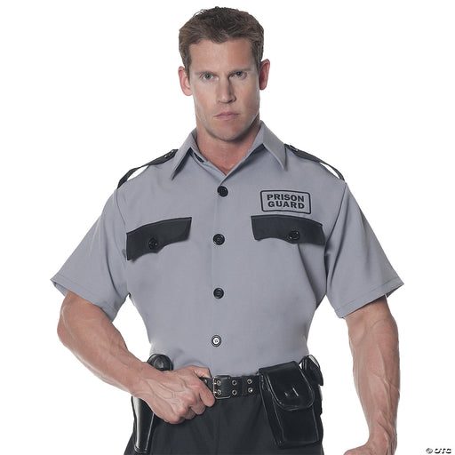 Prison Guard Shirt Adult. This guard will watch the prisoner so there will be no escape! Includes: Grey shirt with black buttons, pocket covers, an...