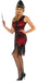 Step into the spotlight at your next Gatsby party or any event celebrating the decadence of the 1920s with the Women's Scarlett Flapper Costume from www.Costume-shop.com. Perfect for those who adore the sophisticated yet flirty style of the flapper era, this costume features a stunning red dress with elegant black trim. The dress is fully beaded on both the front and back, shimmering with every step you take. The zigzag hemline, enhanced with black fringe trim, adds a glamorous touch, ensuring you sway with grace and allure.