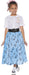 Your little girl will be ready for the sock hop with this cute 1950's Skirt Set. Costume includes white button front shirt with embroidered poodle decal, long blue skirt with music note pattern and wide black belt. Add your own hair ribbon, socks and shoes to this 1950's look.