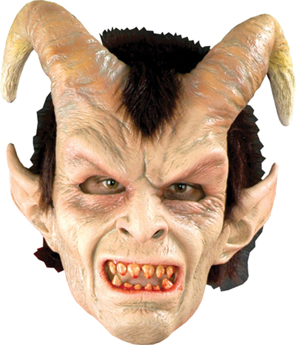 Transform into a majestic figure of darkness with the Elegant Devil Mask! This full over-the-head latex mask features large, imposing horns and attached hair, creating a striking and regal appearance. Designed with large eye openings for good visibility, this mask combines elegance and horror for a truly unforgettable look.