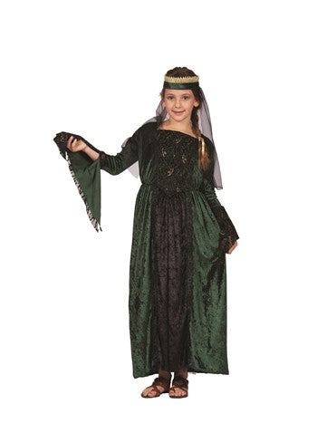 Step into a fairy tale with the Renaissance Girl Costume in green and black! Perfect for kids size Large. Ideal for Halloween, parties, and dress-u...