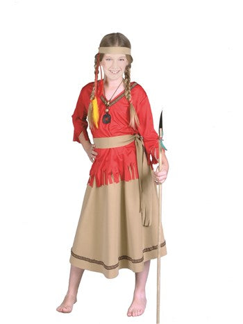 Embrace cultural heritage with the Child Indian Girl Costume in red and camel! Perfect for kids size Large. Ideal for Halloween, parties, and dress-up fun. Ships from Los Angeles. Shop now at Costume-Shop.com.