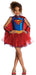 Inspire your little one to embrace her inner superhero with the Superheroine Glitter Tutu Ensemble from www.Costume-shop.com! This officially licensed 2017 Supergirl costume transforms any toddler into a dazzling heroine. The outfit includes a metallic blue sleeveless dress adorned with a glittering Supergirl emblem, an attached red glitter tutu skirt, and a gold belt that adds a touch of superhero chic. The ensemble is completed with a red satin cape trimmed in blue and matching arm guards, all crafted from a comfortable polycotton blend. Perfect for imaginative play, Halloween, or any costume event where a little hero wants to shine!