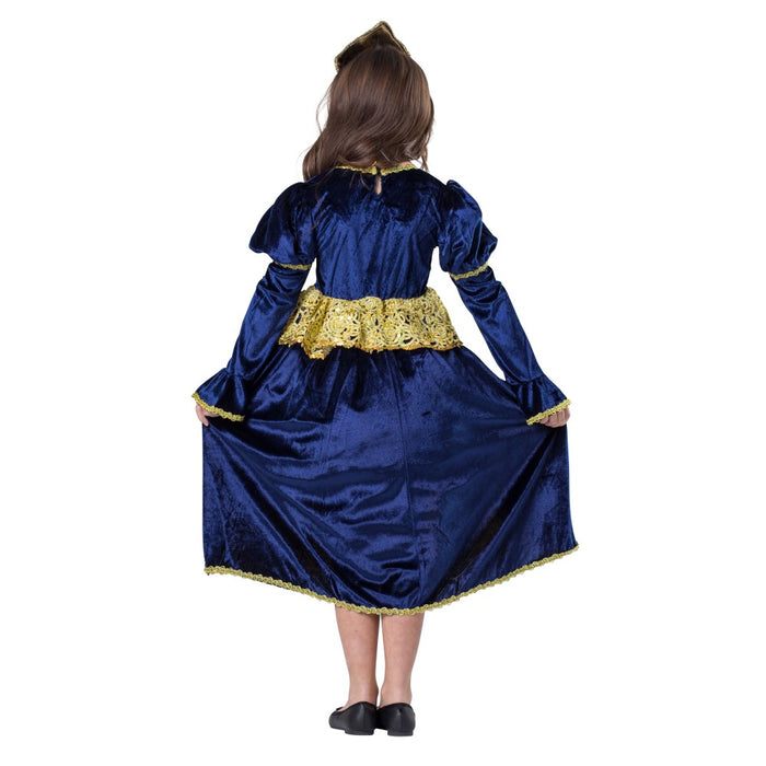 This Renaissance Princess Costume for Girls is a masterpiece and a sight to be adored! Perfect for any little girl who dreams of being a princess, this navy and gold gown features dazzling gold trim details that will make her feel like royalty. For a family theme, a matching royal prince costume is available for her little brother!