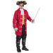 Set sail for high seas adventure with the Elite Men’s Pirate Captain Costume! This deluxe ensemble is perfect for any aspiring buccaneer ready to commandeer their next party, Renaissance fair, or playtime. The costume features a striking red long jacket with gold trim, bronze buttons, and elegant lace cuffs, capturing the quintessential pirate look. An attached vest insert showcases an intricate gold design, complemented by bronze button closures.