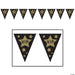 VIP Pennant Banner 12 feet. A great pennant banner that can be used for lots of events such as a birthday party, awards ceremony, or any other event honoring someone important, even as a team. Hang from the ceiling, tables and doors. Includes: One plastic banner with gold stars on black field, with largest star having the letters VIP in the center. Banner measures 11 x 12 ft.. All weather.