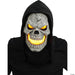 The mask comes with a fabric hood, an elastic strap for a secure fit, and a comfortable foam square at the forehead. It requires 3 AAA batteries (not included) to power the LED eyes and flickering flame panel, ensuring you have a night full of frightful fun.