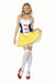 👸 Step Into a Storybook! Capture the hearts and imaginations at your next costume party, Halloween gathering, or any enchanting event with the Snow White Costume from www.Costume-shop.com. Perfect for those who adore classic fairy tale glamour, this costume brings Snow White's iconic look into a playful and modern light. Featuring a mini dress with clear plastic straps and a back zipper closure, the top dazzles in white with blue sides adorned with red bows, while the attached yellow skirt swirls with charm. A red hair bow and a matching choker necklace complete your magical transformation.
