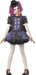 She might be broken but she is still sweet. The child Broken Doll costume includes a purple and black dress with Velcro attachable back bow, leggings, matching mini hat and a white quarter mask. Wig, shoes, and pettiskirt are not included.